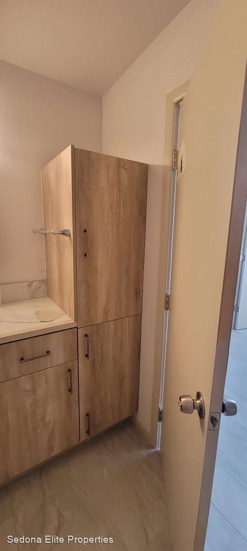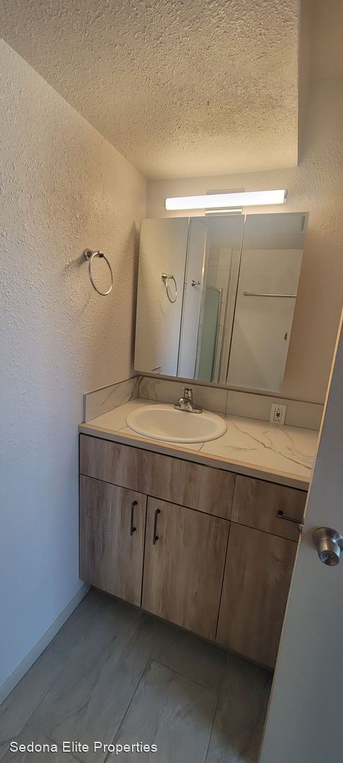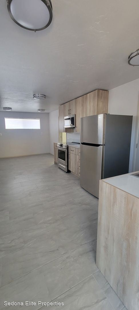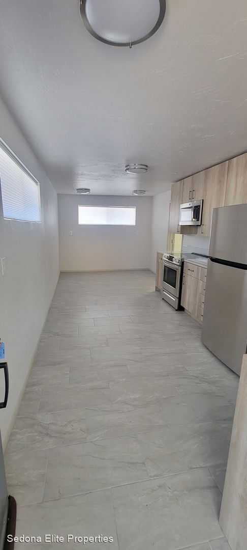 Unfurnished, 1-year long-term rental, Garage Space Included - This quaint 1 bedroom, 1 bathroom unit is located in the heart of West Sedona on the second floor of a mixed-use building facing 89A. Newly redone, the property boasts stainless steel appliances; hard surfaced flooring; updated cabinetry and counter-tops; and tiled bathrooms.