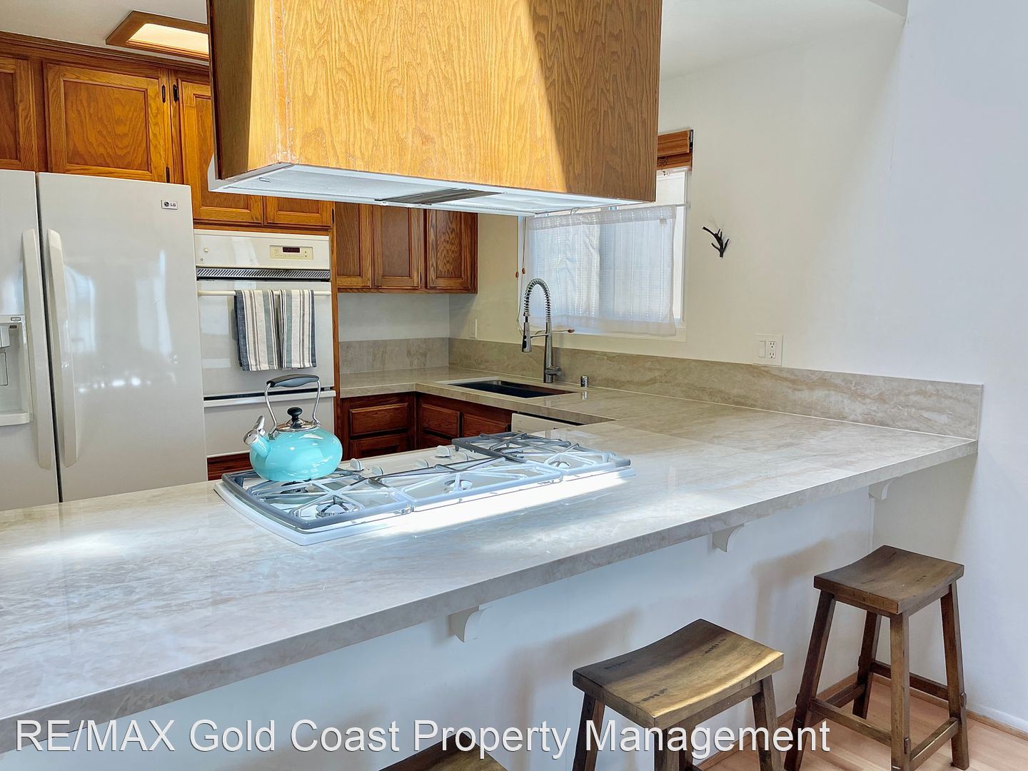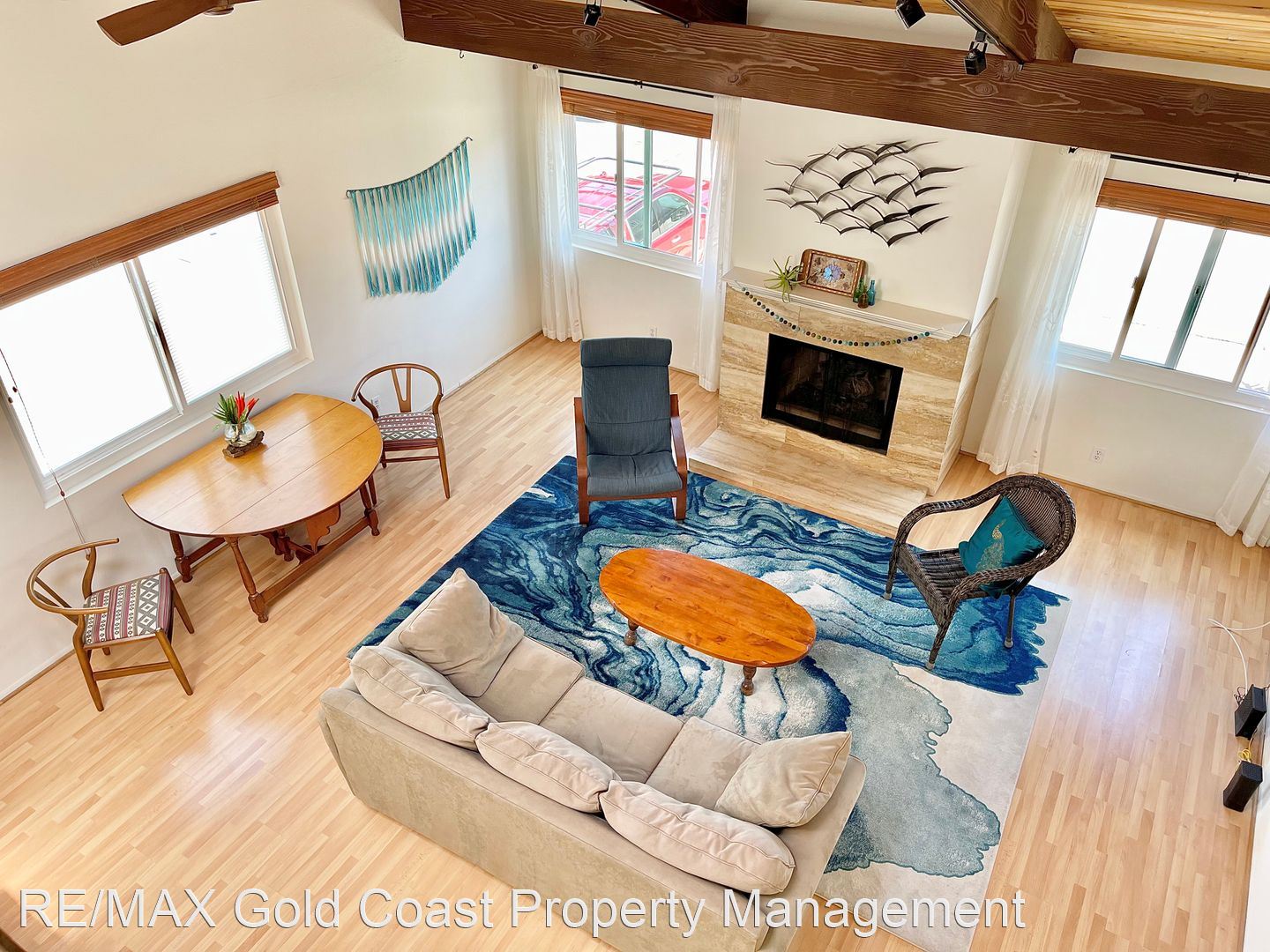When you enter the property, head up the stairs to find the living room, kitchen, main bedroom and a full bathroom. The living room has high ceilings, a fireplace, and super cute beach décor. The kitchen has brand new countertops and plenty of cabinet space. Just down the hall, find the main bedroom, with a king bed, and newly updated full bathroom.