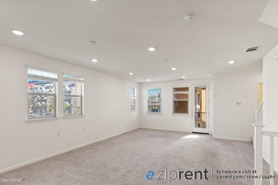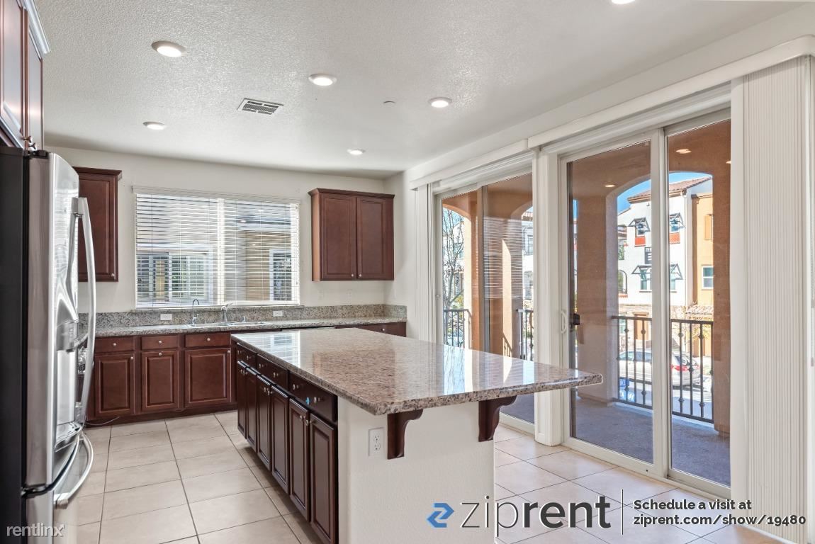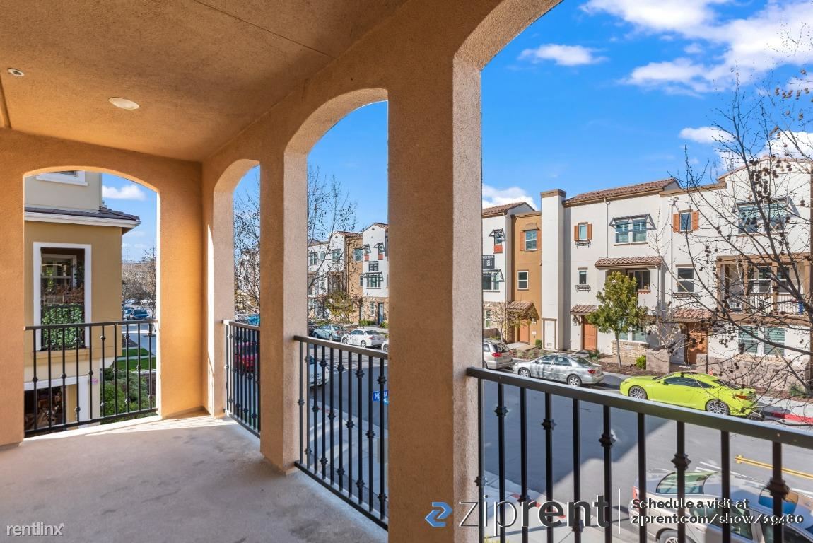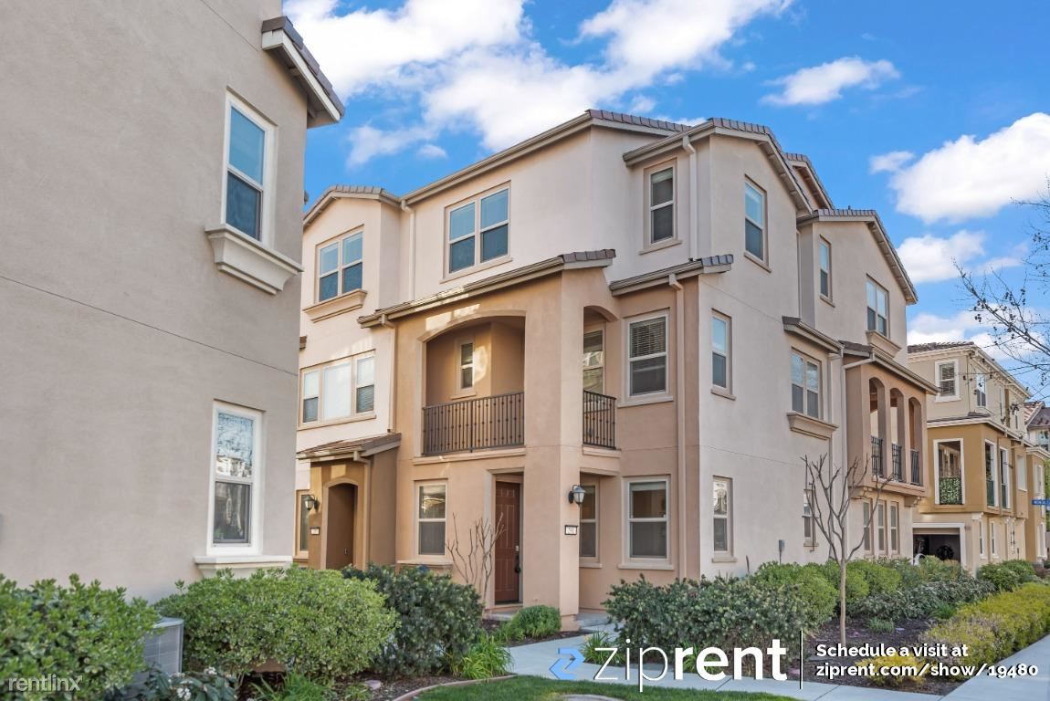 AVAILABLE NOW! It is a gorgeous 3 level townhome, It is a Spacious 4 Bed 3.5 Bath end unit facing street with ample natural lighting. First floor bedroom with in-suite full bath, perfect for guests or an office and 2-car side by side garage .Second floor has outdoor space with 2 walkout decks one accessible from the kitchen and the other from the living room. Great for entertaining family and guests. Stunning and spacious kitchen with an enormous island. Brightly colored walls, high vaulted ceilings and recessed lights bring in the ambiance. Top floor has a master bedroom with in-suite full bath with walk-in custom closet , two other bedrooms and one bath. Newly installed wood flooring as well! Newly built Elaine Richardson Park is a block away . Easy commute to major Tech-companies and minutes away from San Jose down town.