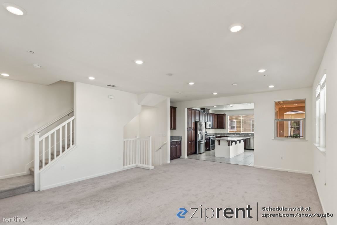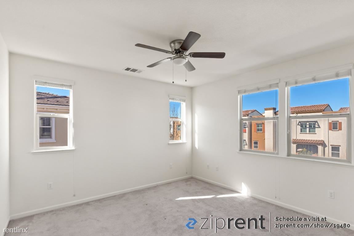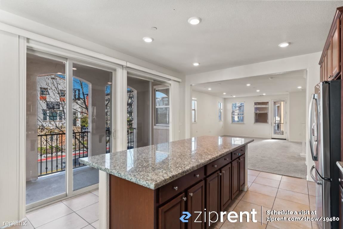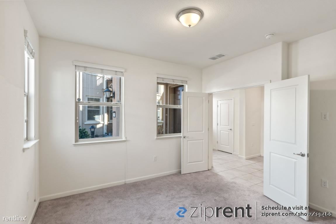 AVAILABLE NOW! It is a gorgeous 3 level townhome, It is a Spacious 4 Bed 3.5 Bath end unit facing street with ample natural lighting. First floor bedroom with in-suite full bath, perfect for guests or an office and 2-car side by side garage .Second floor has outdoor space with 2 walkout decks one accessible from the kitchen and the other from the living room. Great for entertaining family and guests. Stunning and spacious kitchen with an enormous island. Brightly colored walls, high vaulted ceilings and recessed lights bring in the ambiance. Top floor has a master bedroom with in-suite full bath with walk-in custom closet , two other bedrooms and one bath. Newly installed wood flooring as well! Newly built Elaine Richardson Park is a block away . Easy commute to major Tech-companies and minutes away from San Jose down town.