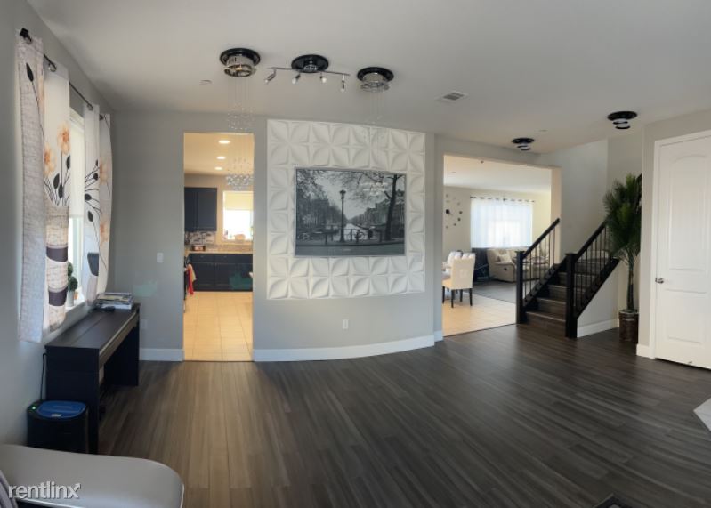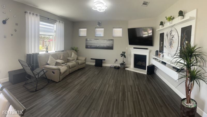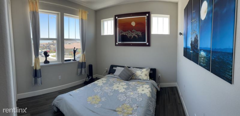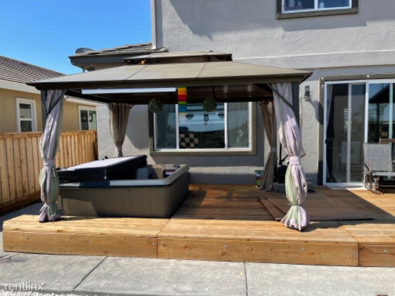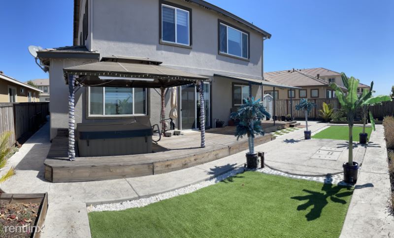 The house is a 2 year old 4 bedrooms + loft and 3 full baths (Covered garage, one room and one full bath on first floor not included and for owners use. Privacy wall present between owner and renter. Owner has a different access to the house). It has a nice and cozy backyard with a deck and a hot tub and a small fountain for relaxation. The loft was converted into a mini gym for in-house exercises. It is fully furnished with complete furnitures and appliances. Owner will maintain the front yard and the backyard. It is located in a new community with quiet and clean surroundings.