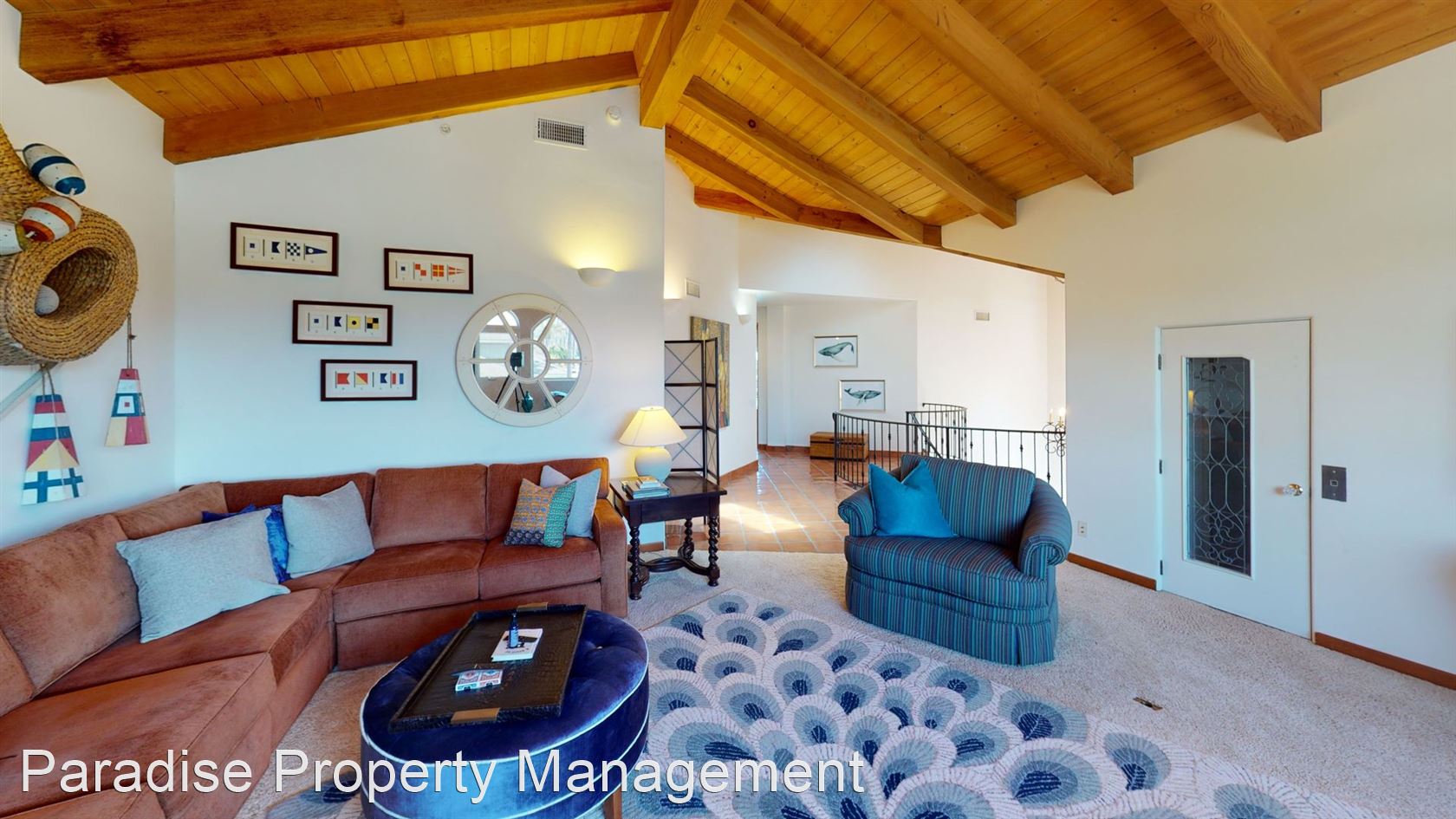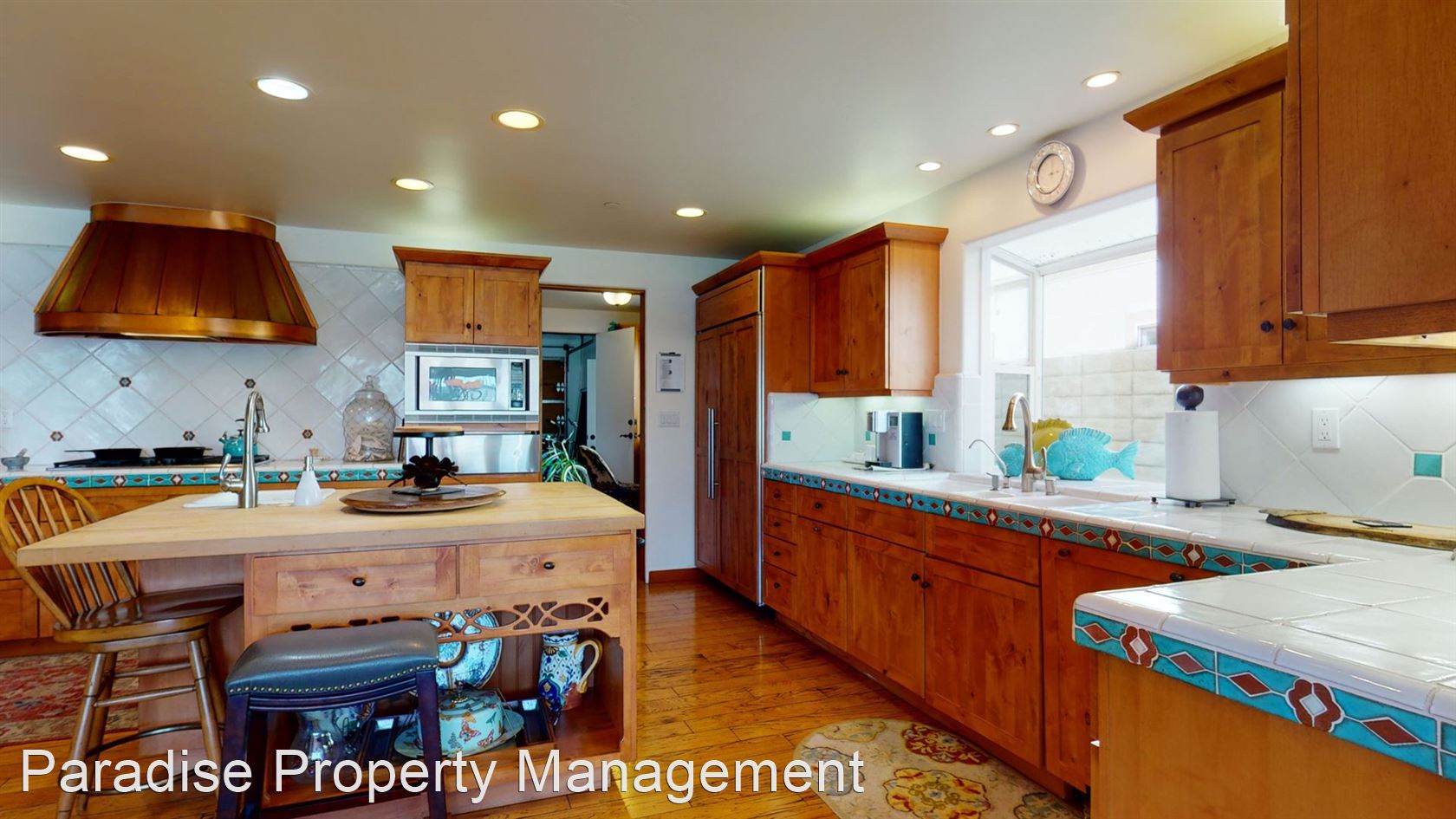 The decorative winding staircase with Spanish paver flooring and accent tiles deliver you to the second level that features a large family/great room, and two master bedroom suites, each with en-suite baths.