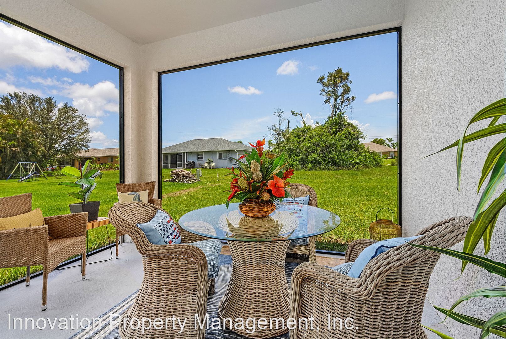Model home available to view; Be the first to rent this BRAND NEW, 3-CAR GARAGE home - Special Pricing now through July 1 Be the first to rent this BRAND NEW, 3-CAR GARAGE home. This property boasts four bedrooms (Or 3 + study), two baths and is located in the heart of Cape Coral. This home features many impressive upgrades including 18 inch ceramic tile floors throughout along with 42 inch wood cabinets with soft close hinges and drawers. The beautiful granite countertops and tile backsplash brings together the kitchen atmosphere with a sense of style and class. The 10 foot breakfast bar counter top can easily accommodate 5 bar stools. Lots of working space along with upgraded stainless steel appliances complete this spacious kitchen. There are ceiling fans in all bedrooms and even on the covered lanai. The home has an indoor laundry room WITH washer and dryer included! Lawncare can be included in your rent with a minimal increase. Rest at ease renting our homes with our superior customer service experience. We believe in building a solid, quality home. We believe in providing an excellent, convenient location. We have several homes nearly completed with more under construction. Choose from several move in dates and addresses. Photos are of model home not actual home.