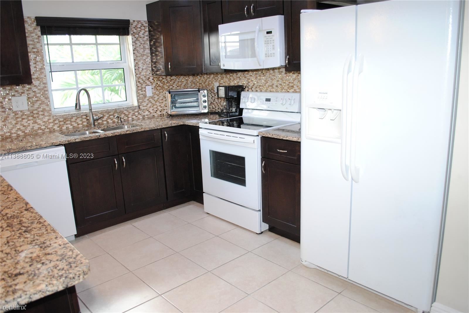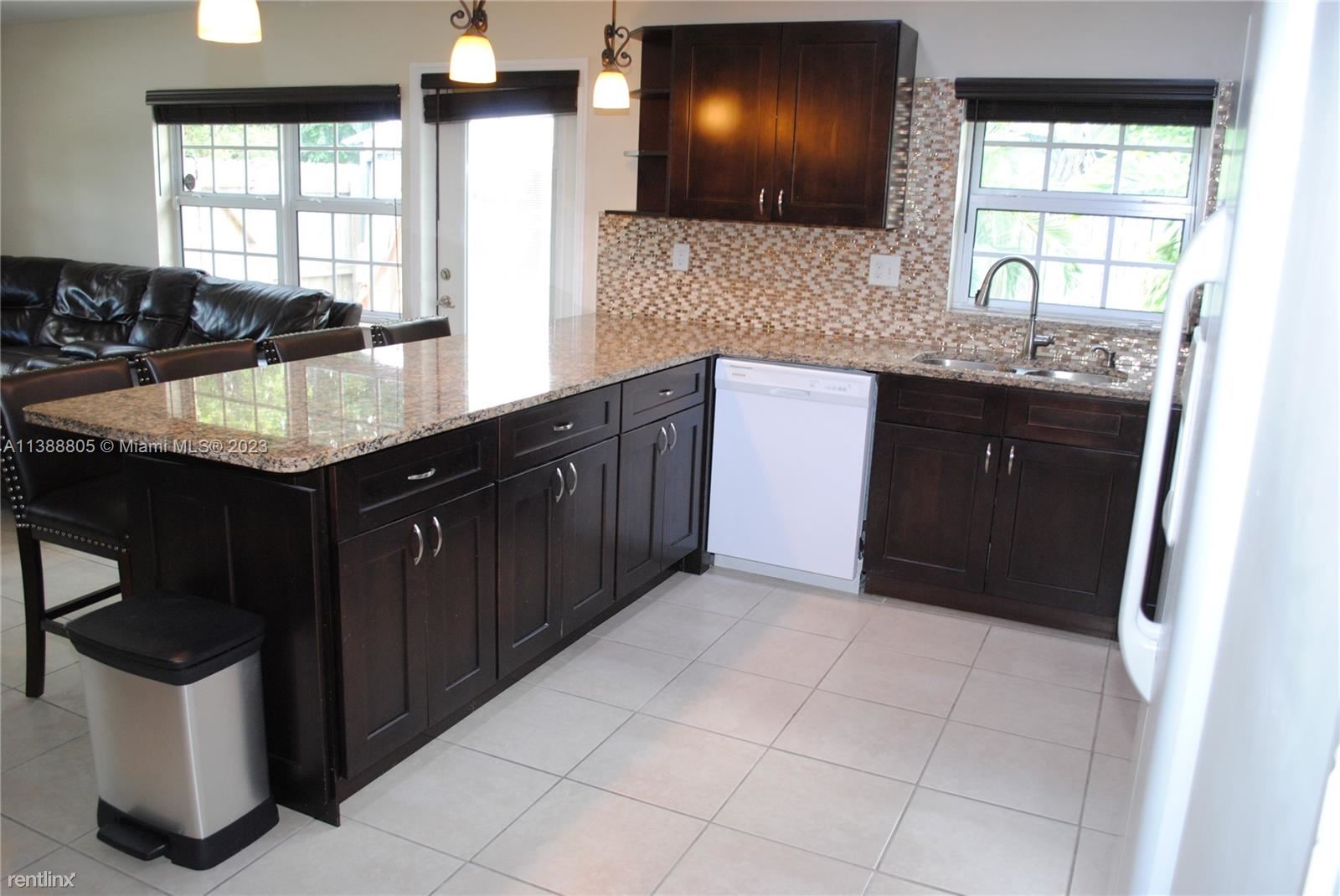 This well-maintained move-in furnished home is ideal for entertaining featuring a stunning fenced-in yard that has 3 covered gazebos all on pavers w/river rock. Immaculate landscaping with tropical palm trees, exterior electrical outlets & outdoor yard lighting for entertaining, plus security lights. Lovely front porch; sprinkler system with timer; solar panels & hurricane impact windows; kitchen upgraded granite countertops complementary backsplash, recessed & pin-lighting over breakfast bar; pantry, Tank-less water heater, laundry room with custom cabinets & storage closet; linen closet, master bedroom has a bath & walk-in closet. Spacious 1 car garage w/double driveway for parking 6 cars