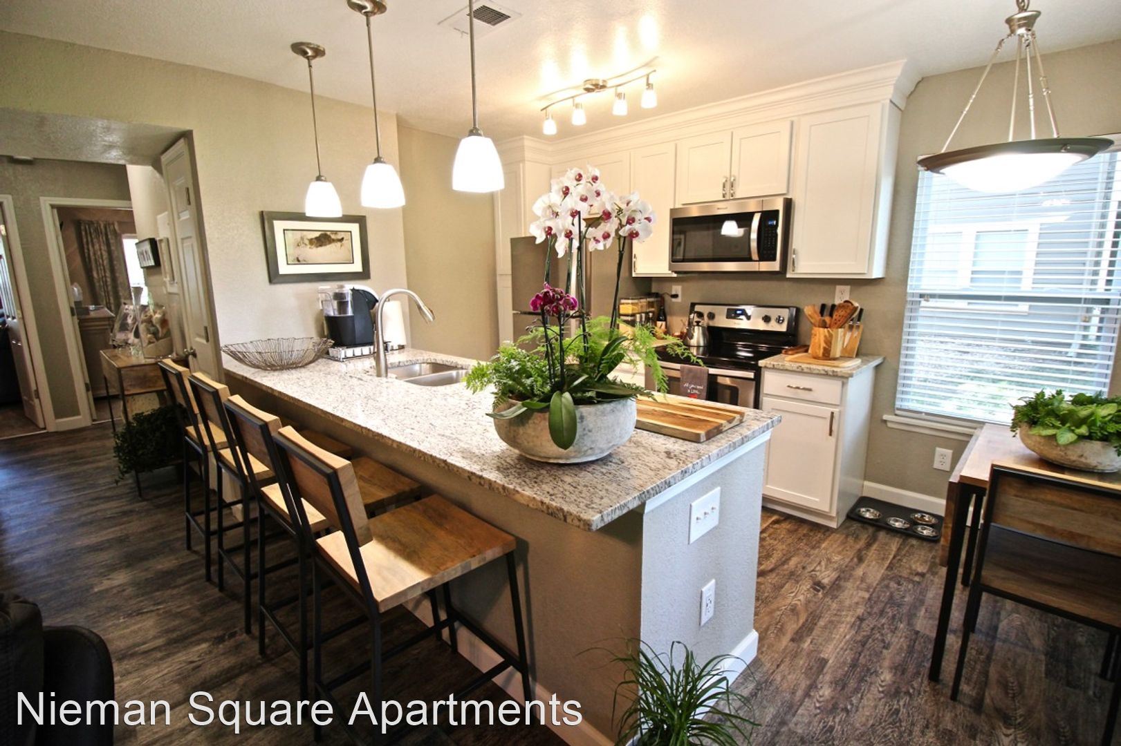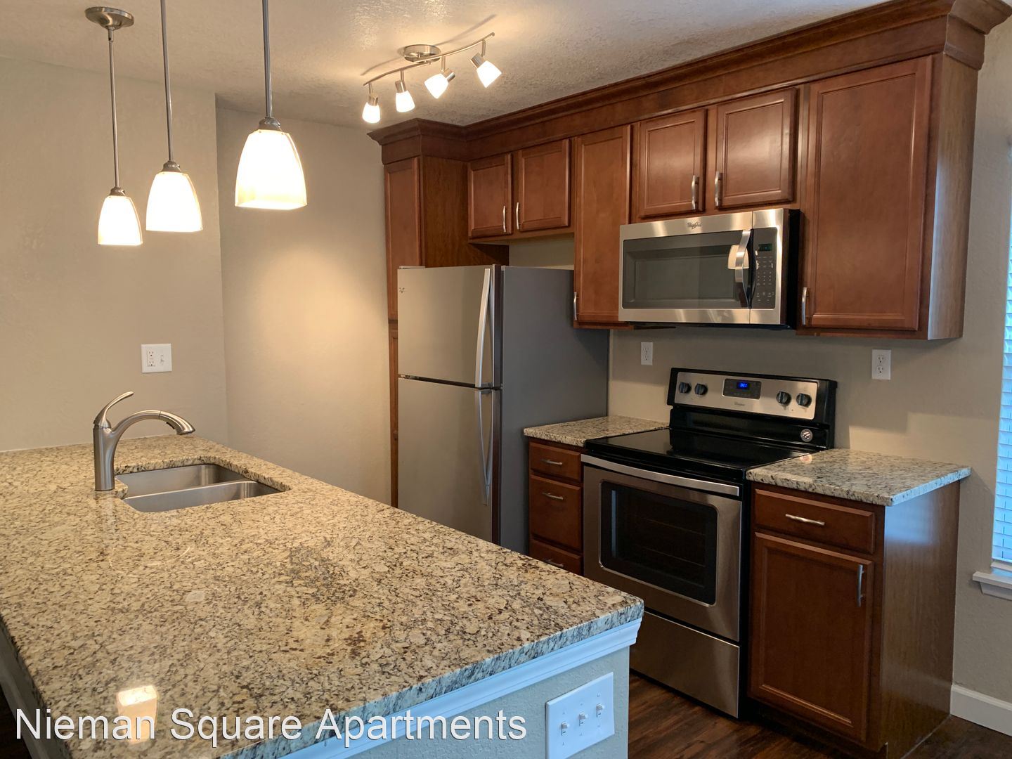 Beautiful, updated one bedroom with custom kitchen and courtyard view! - Welcome to Nieman Square! Located in Shawnee, KS this community is close to everything! Nieman Square offers everything you have been searching for! The Clubhouse was recently renovated with a Bistro & Game Room, 24 hour Fitness Center & beautiful outdoor pool. Offering one and two bedroom apartments, Nieman Square is an oasis with wooded surroundings, beautiful courtyards, washer & dryers in all apartment homes, and wood burning fireplaces with wood provided. Come home to a superb Johnson County location near I-35 & 435, premier shopping and great restaurants! Pet cats are allowed and pet dogs up to 75lbs. Free Google Fiber internet is available, covered parking is available to rent, and surface parking in the large private lot is free. This is a smoke-free community! *Refundable security deposit of $325 or one month of rent, based on application. This lovely, custom apartment has beautiful courtyard views! The kitchen features custom cabinets, beautiful fixtures, stainless steel appliances & granite counter tops. You'll love having plank flooring throughout and cozy carpet in the bedroom. There are two bedroom closets as well as extra locked storage on the patio! Modern updates and washer/dryer in unit make this worth a look! Call us today to set up a showing: 913-432-5247