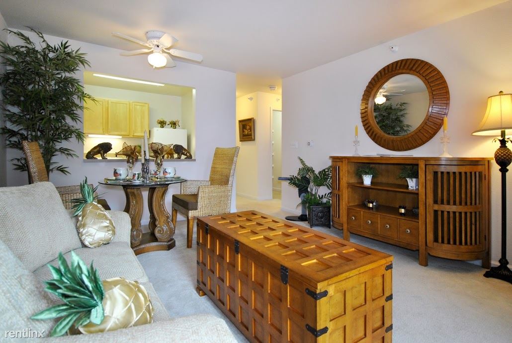 Upon entering the front hall you turn into a very pleasant large kitchen that offers room for a table and chairs for two. We have found, however, that residents have created a variety of uses for this area. Some set up a computer area while others have a portable pantry and additional shelving here. The kitchen also has wonderful open space above the kitchen cabinets which creates a perfect spot for displaying a beloved collection. The extra tall height of the kitchen cabinets helps to ensure that there is plenty of room for storage. The opening from the kitchen through to the living area provides a bright and cheery atmosphere.