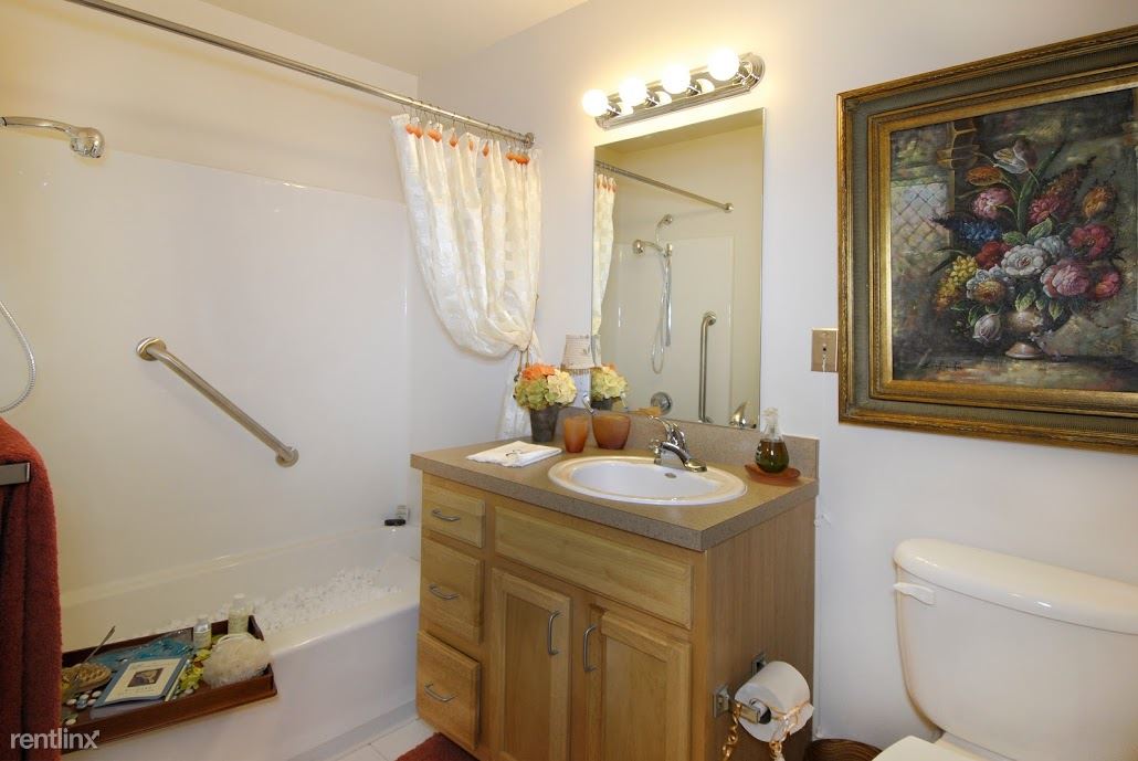 The bathroom is offered with a traditional tub/shower or a walk-in shower, your choice. The sink is centered in a nice sized cabinet with a stack of drawers for convenience. Grab bars are included if additional assistance is desired.