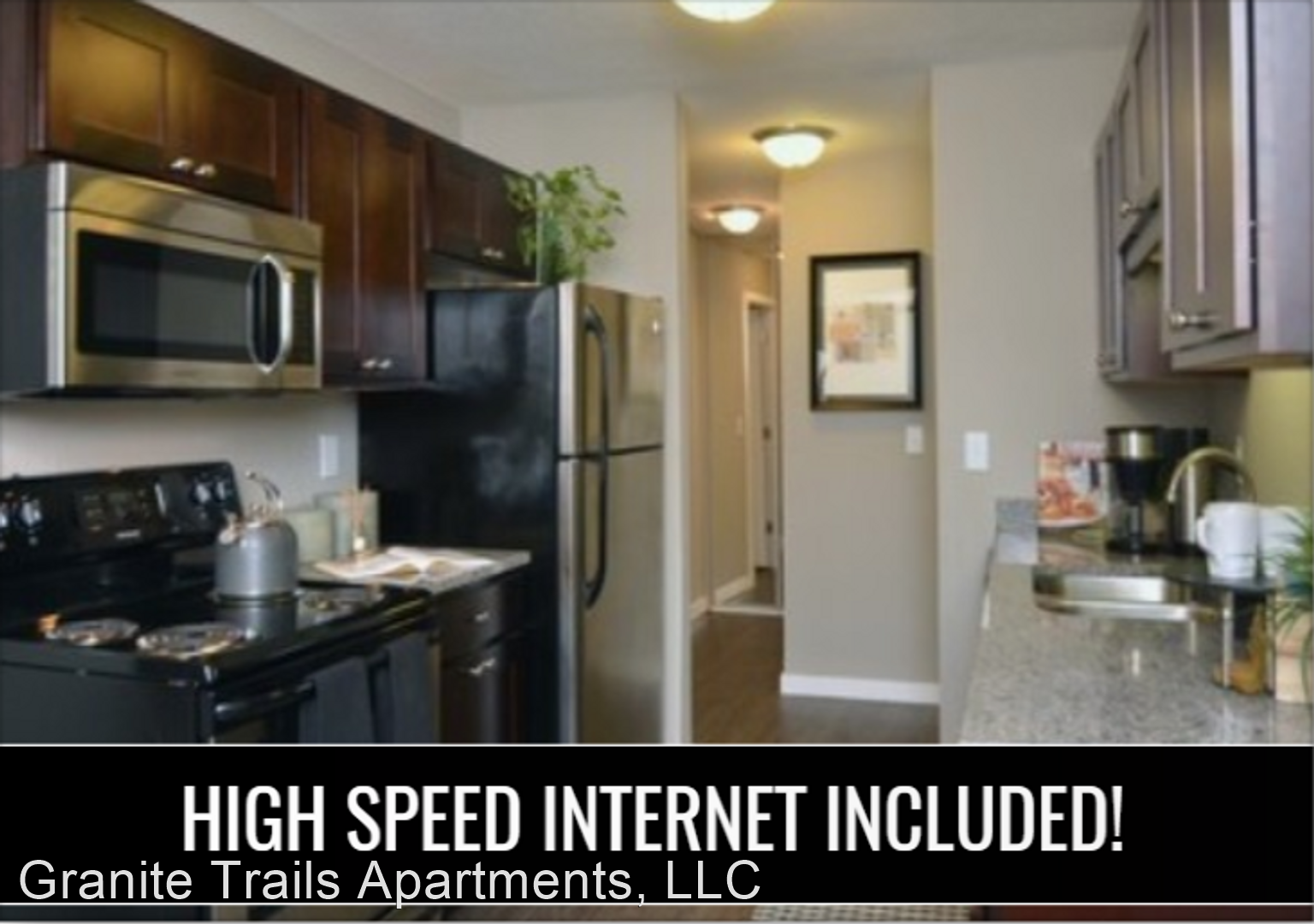FREE High Speed INTERNET! - Granite Trails Apartments was purchased in the fall of 2015 and has undergone a complete $4 million dollar renovation. The newly remodeled units feature beautiful thick granite counter tops, stainless steel under mount sinks, new lighting fixtures, and stainless steel appliances that give you the downtown condo finish without the downtown price. Along with interior renovations we also have created a new fitness room and club room to use, remodeled the laundry rooms, entire exterior including garages, as well as added new landscaping and rain gardens. The newest upgrade that we are proud to announce is FREE High Speed IN HOME INTERNET. It's a dedicated fiber line that's direct to our building. Speed is partitioned so NO SLOW-DOWNS! We are pet friendly and allow apartment friendly dogs up to 45 pounds and feature a spacious lot to walk your dogs as well as an off-leash dog park. For your safety and security no on-line applications will be processed until identification has been verified. We do not accept rental assistance programs at this time for this property Prices and apartment availability are subject to change