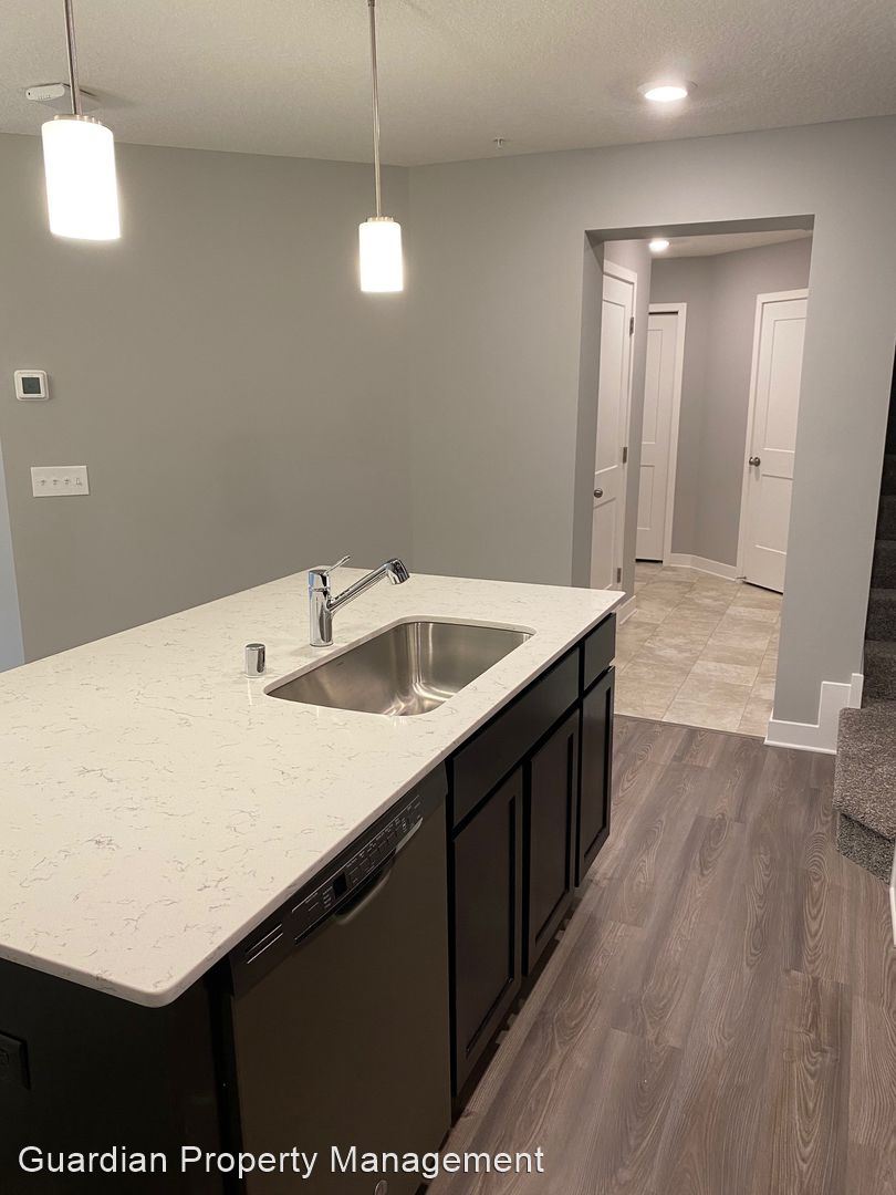 2020 built luxury townhouse in Woodbury available August 1. Open floor plan on main level. Kitchen has an island, stainless appliances, and quartz counters. There's a half bathroom off the kitchen.