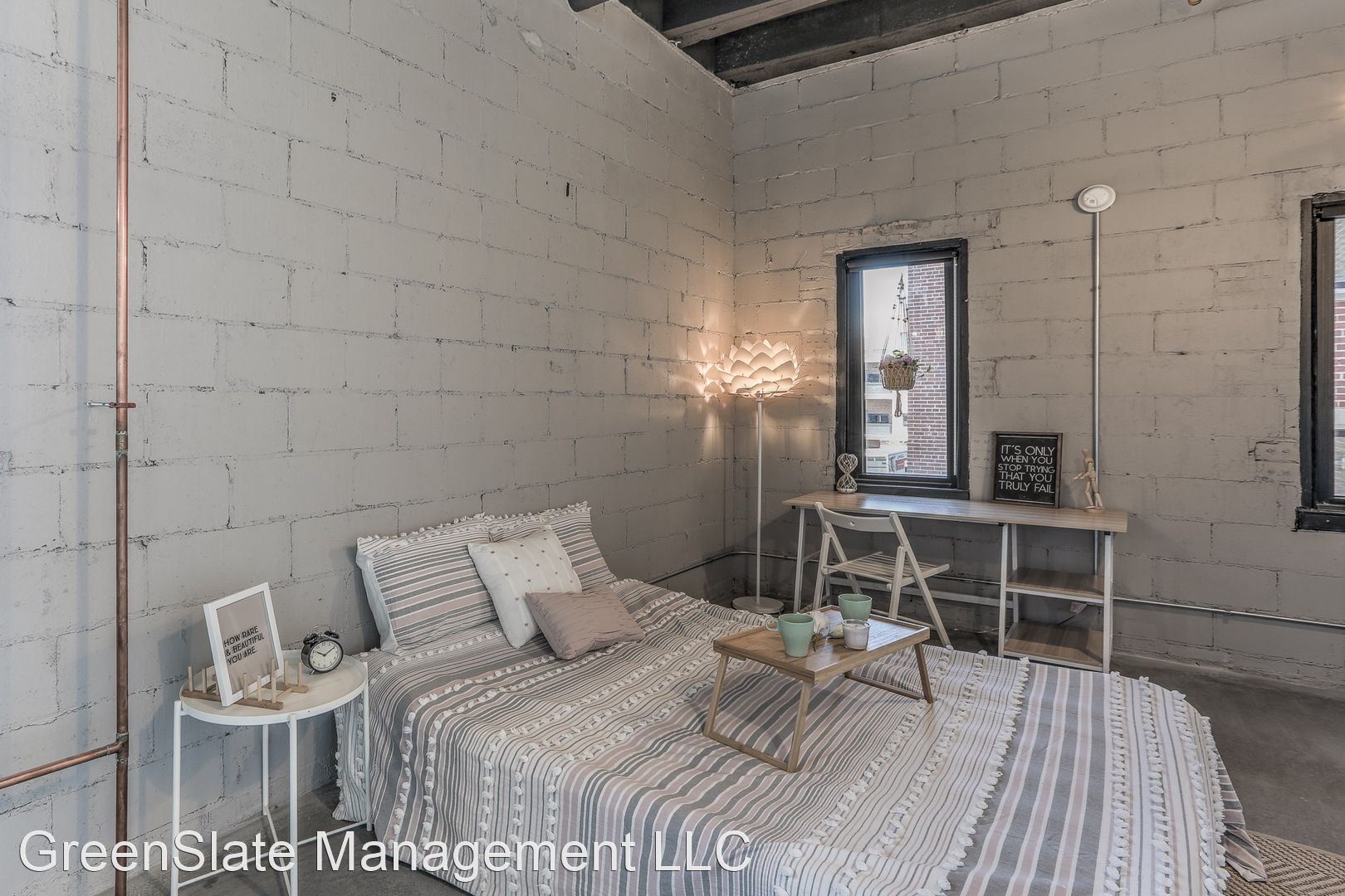 Dahlman Flats -Studio - The Dahlman Flats are a modern, masterfully-planned addition to our GreenSlate Management portfolio. The Dahlman offers you the quintessential city living experience with spectacular downtown views and superior access to the Old Market District. This redesigned building incorporates the classic style of exposed brick and vintage aesthetics in addition to modern finishes, polished concrete floors, and oversized windows.