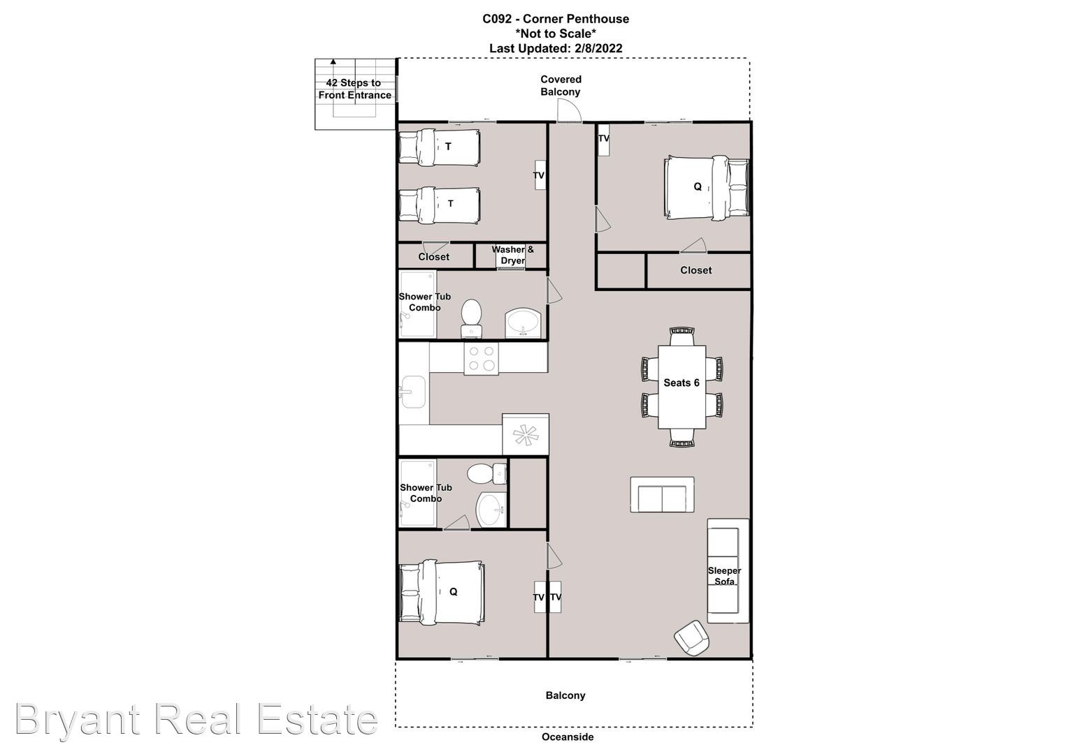This condo was freshly renovated for the 2019 season with new flooring and ceilings, new drapes, upgraded bedding, lighting fixtures and painted. The primary bedroom and living room are oceanfront and lead out to the large ocean front decks, perfect for outdoor dining and watching the waves roll in. Both the primary bedroom and second bedrooms have Queen beds, the third bedroom has two Twin beds and there is an additional sofa bed for sleeping located in the living room. Enjoy a dip in the street side pool, or walk over to the ocean on the private walkover.